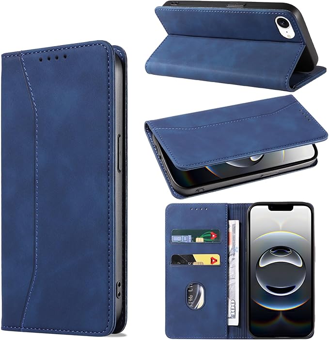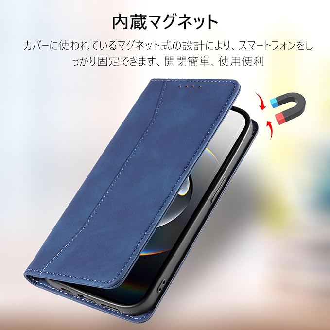 KWATUNG iPhone 16e 用 ケース 手帳型 アイフォン 16e 用 ケース 手帳型 おしゃれ いPhone16e 用手帳型ケース 肌感レザー 内蔵マグネット 耐衝撃 iPhone 16e用 スマホケース カード収納 スタンド機能 全面保護 アイホン16e 用 6.1インチ ブルー