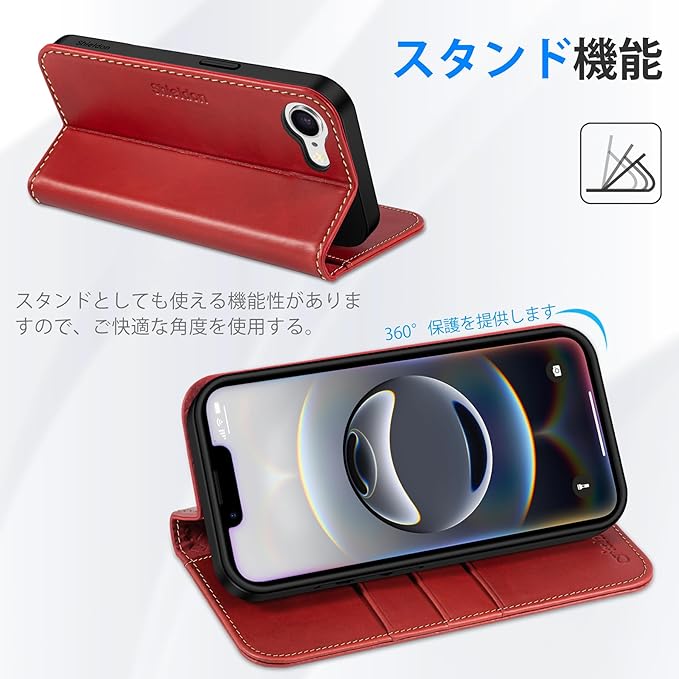 SHIELDON iPhone 16e対応ケース 本革 手帳型 アイホン16e用 スマホカバー 衝撃吸収 TPU素材 カード収納 横置きスタンド機能 マグネット内蔵 [RFIDブロッキング] 全面保護 あいふぉん16e 対応スマホケース 2025年発売 6.1インチ 5G レトロレッド