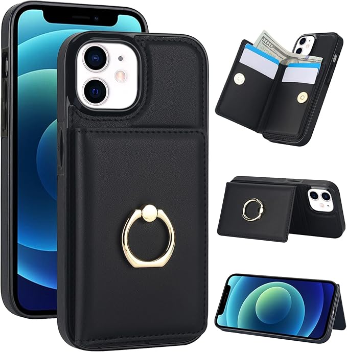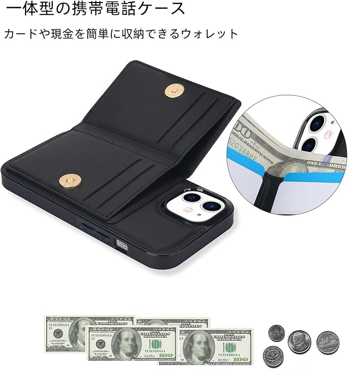 多機能:この携帯カバー iphone 12 リング付き用ケースには、小銭入れ、ウィンドウカードホルダー、複数のカードスロット、スナップオンフラップが装備されており、重要なカードを完全に保護します。マグネット式の縦開きウォレットケースにはキックスタンド機能があり、特別なデザインです。背面のフラップを使用して、キックスタンドとして水平に置くことができます