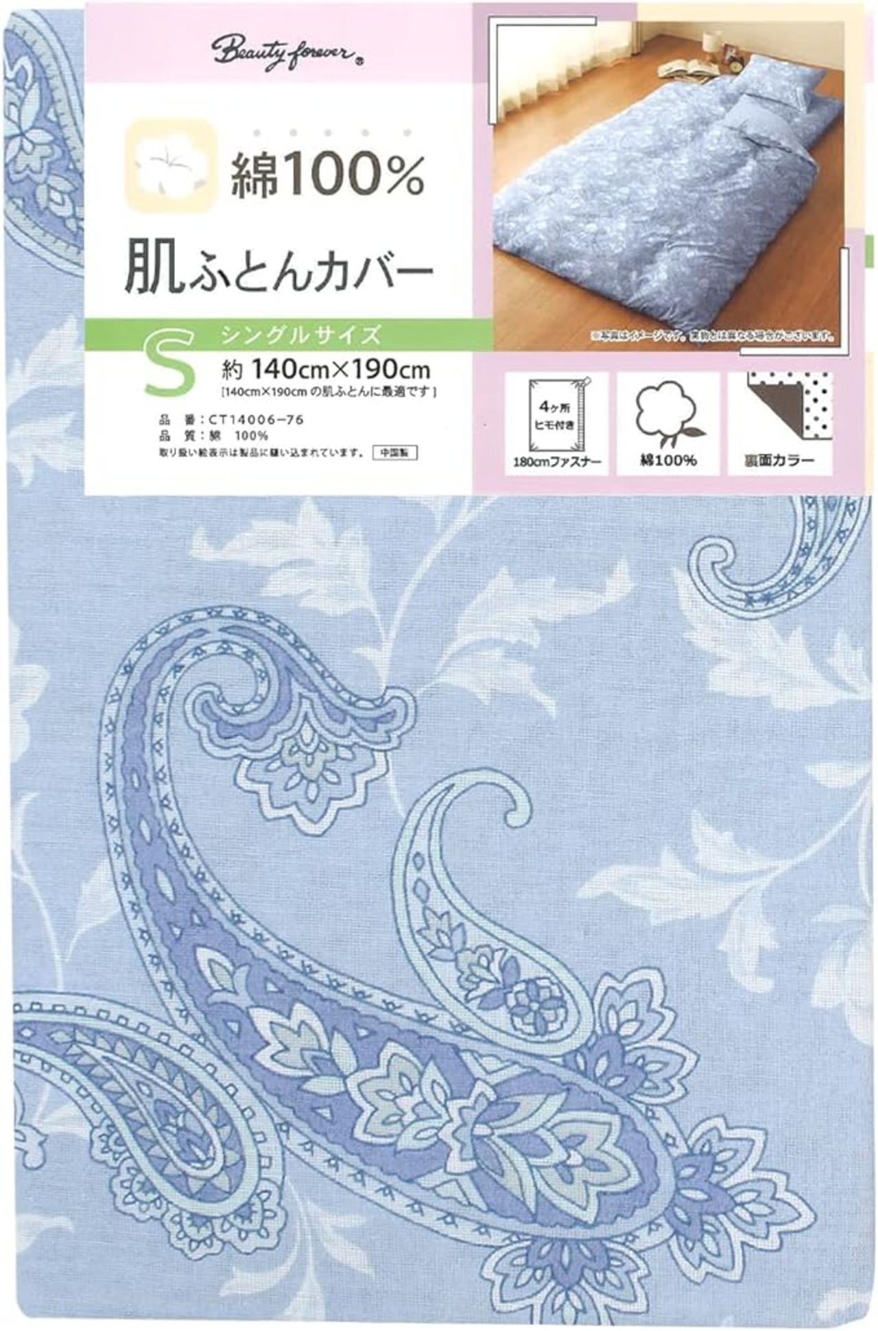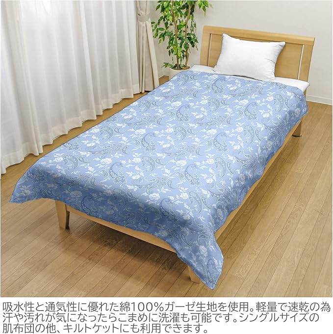 メリーナイト(Merry Night) 肌布団カバー ガーゼ 「ペイズリーII」 ブルー シングル 約140 190cm 綿100% ふんわりやさしい肌触り 吸水性 通気性 軽量 洗える 夏用寝具 CT14006-76