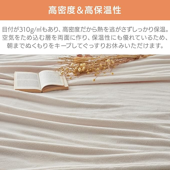 高い繊維密度は空気を溜め込む層が多く、優れた保温性を実現。ぬくもりをキープします。
