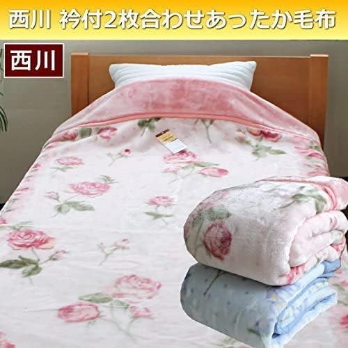 【西川 衿付き2枚合わせふっくら毛布 フローレン】