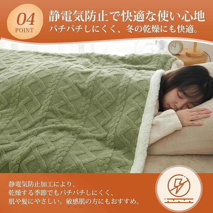 【贅沢二枚合わせで、極上のあたたかさ】柔らかいフランネルとシープ調ボアを二枚合わせにした贅沢仕様。空気をたっぷり含む構造で保温性が高く、寒い冬の夜も朝までぬくもりが続く。
