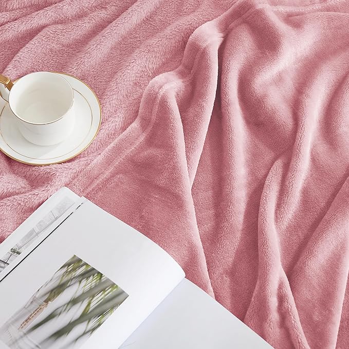 NICETOWN 毛布 ブランケット ひざ掛け シングル フランネル 洗える おしゃれ ふわふわ感 冬用 ソファーベッド 軽量 保温 オフィス用 ソファーベッド ディープ ベビーピンク 140*200cm