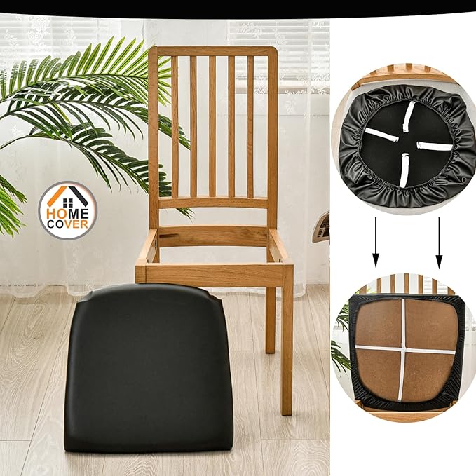 PU 座面カバー, 座面カバー 2枚 椅子カバー 座面 防水 耐久性 取り外し可能 ストレッチ 座面カバー ダイニングチェア用-2枚-黒