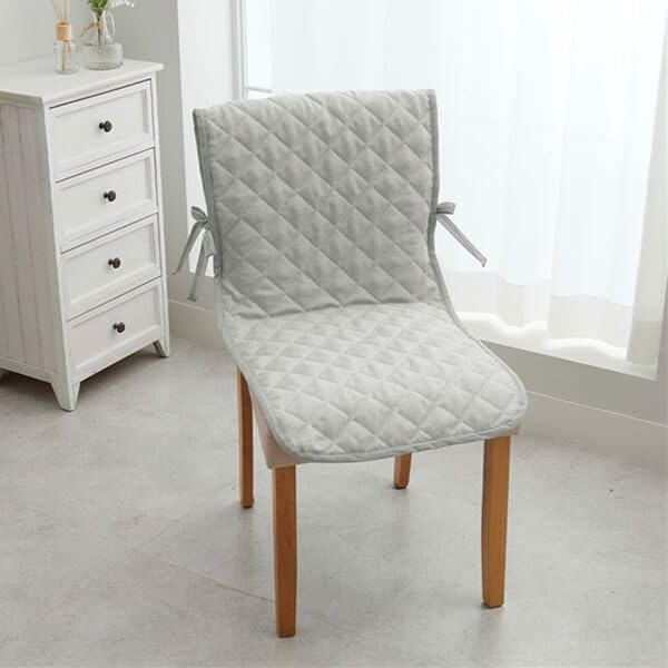 【装着しやすい。】チェアカバーを、被せてサイドと、腰の部分の紐を結ぶだけで簡単に装着出来ます。サイドの他に腰の部分にも紐があるので、椅子から浮きにくく、ぴったりフィットします。また、紐も切れにくいです。