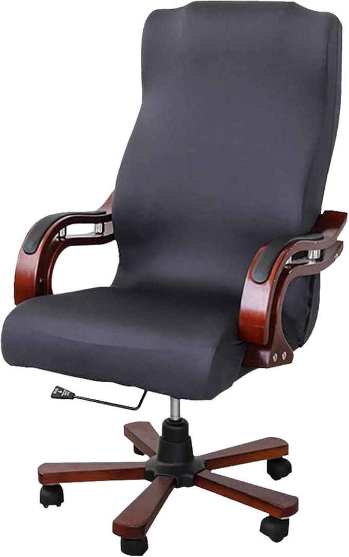 Newfashion チェアカバー オフィス椅子カバー 事務椅子 伸縮素材 回転式 一体式 ファスナー付き 洗濯可能 取り外し可能 (ビジネスグレー, L)