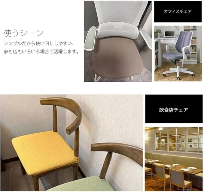 ✿フィット感が良い:椅子座面の曲線に完璧にフィットするダイナミックカッティング技術を採用し、弾力性と適用性を持つチェアカバーです。 厚手生地なので、クッションを下に放置してもぴったりフィット!ふかふかイスの座面にチェンジ。上からかぶせて座面と背もたれ、肘受けの隙間に余分を挟み込むと生地が伸縮しチェアにフィットしてくれます。
