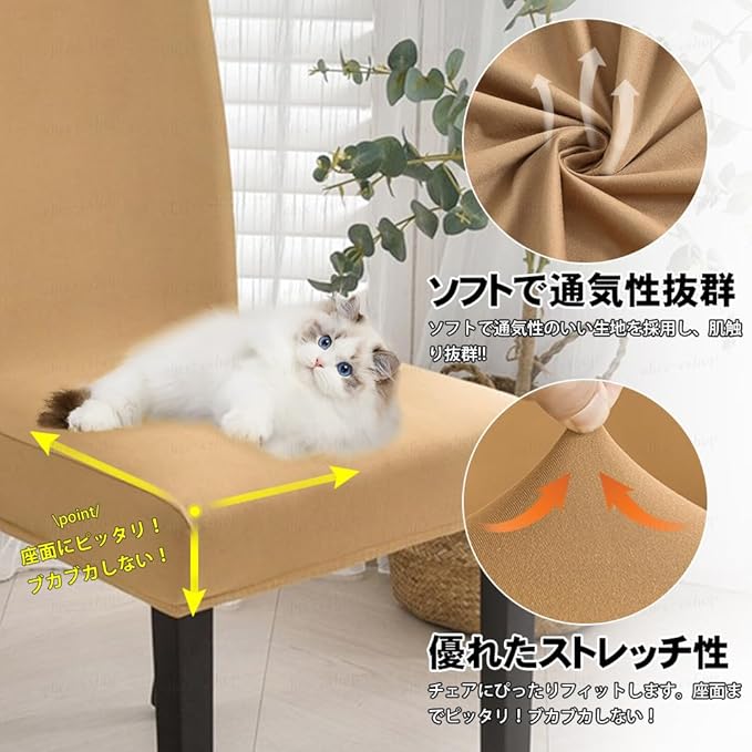 椅子カバー チェアカバー 全面防水 ダイニングチェアカバー ストレッチ 伸縮素材 耐久性 汚れ防止 ファッション 洗える 家庭 ホテル ペット パーティー ウェディング 結婚式 洗える 取り外し可能 キャメル4点セット