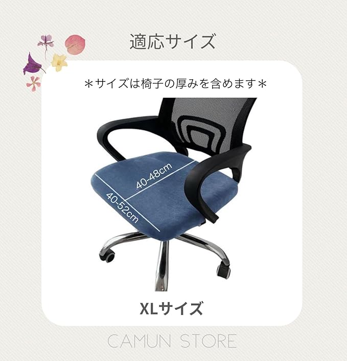 イスカバー オフィスチェアカバー 大きめ オフィスイスカバー 座面カバー フィット ワークチェアカバー 事務 椅子カバー 北欧 洗える ベルベット素材 (1枚入り, ブラック, XL(42-52cm))