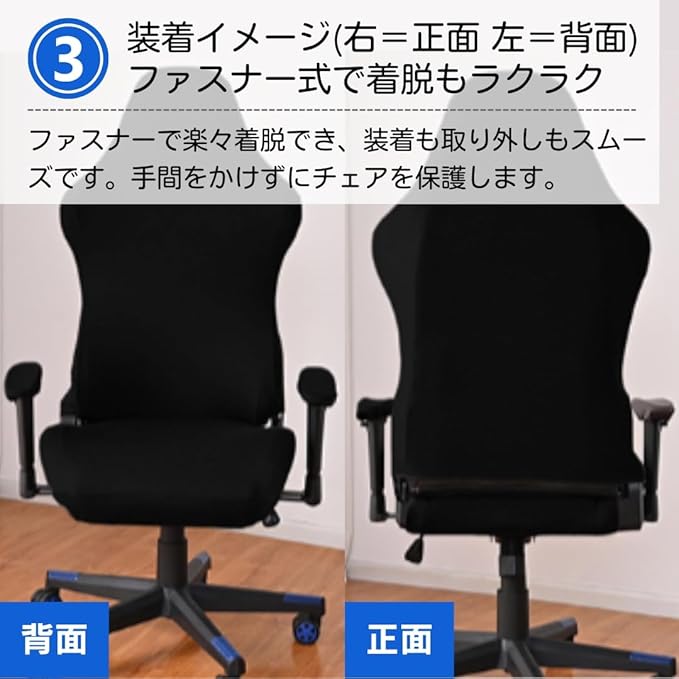 【簡単にチェアが生まれ変わるゲーミングチェアカバー】古くなったゲーミングチェアにかけるだけで、見た目が一新します。汚れを防ぎたい方にもぴったりで、伸縮性があり取り付けも簡単です。