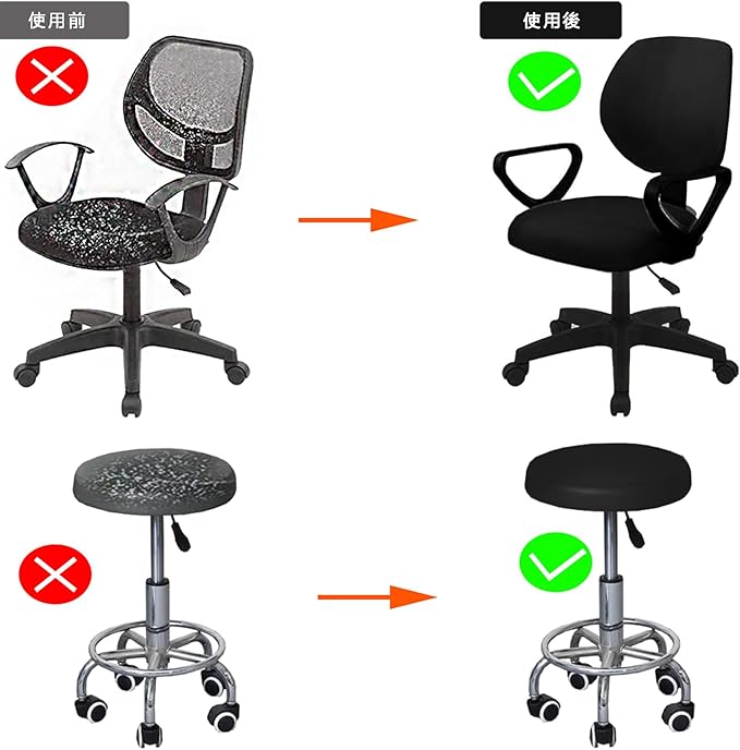 ✅【 ワンタッチで装着できる アームレストカバー&衛生的&マルチ】簡単に取り外しなので、洗濯も可能です、いつでも清潔を保つことができます。黒いチェアカバーですので、汚れが目立たないです。本製品の『 アームレストカバー 』はアームレストを覆いかぶして装着する『 フルカバー型(ゴム付き) 』で付け外しはワンタッチで、できるようになっております。