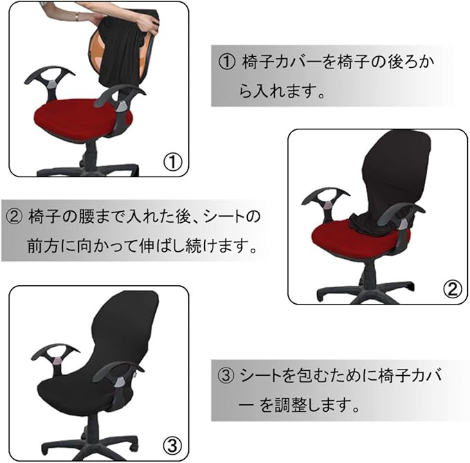 オフィスチェアカバー 椅子カバー チェアカバー オフィス椅子カバー 座面部分と背もたれ 一体式 伸縮素材 洗濯可能 着脱可能