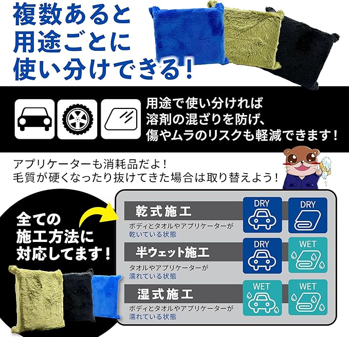 【ながら洗車】アプリケーターモンスター 4個セット『 さらなる磨きとコーティングのモンスターここに爆誕。 』 下地処理 コーティング剤 車 マイクロファイバー 洗車 洗車用 スポンジ アプモン