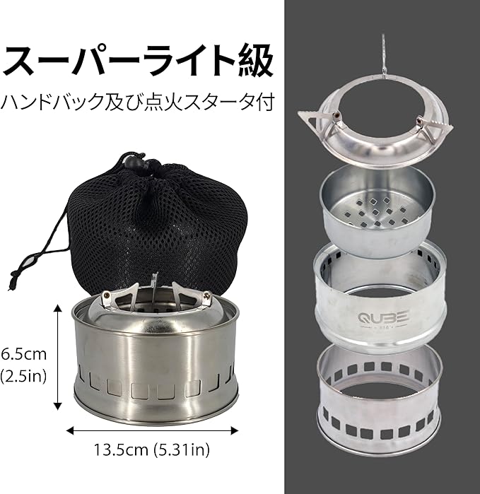 丈夫で軽量なステンレス製ストーブ – 耐久性抜群、軽量設計でキャンプ、登山、バックパッキング、ソロキャンプに最適。