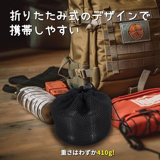 エコ&自然燃料対応 – ガス缶不要。落ち葉・小枝・薪など自然の燃料で使用でき、キャンプやサバイバルシーンに最適。