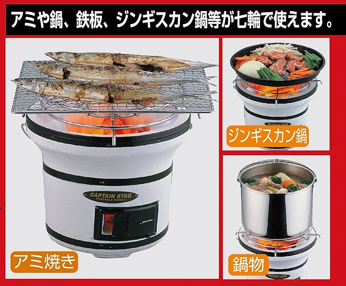 アミや鍋、鉄板、ジンギスカン鍋等が七輪で使用できる