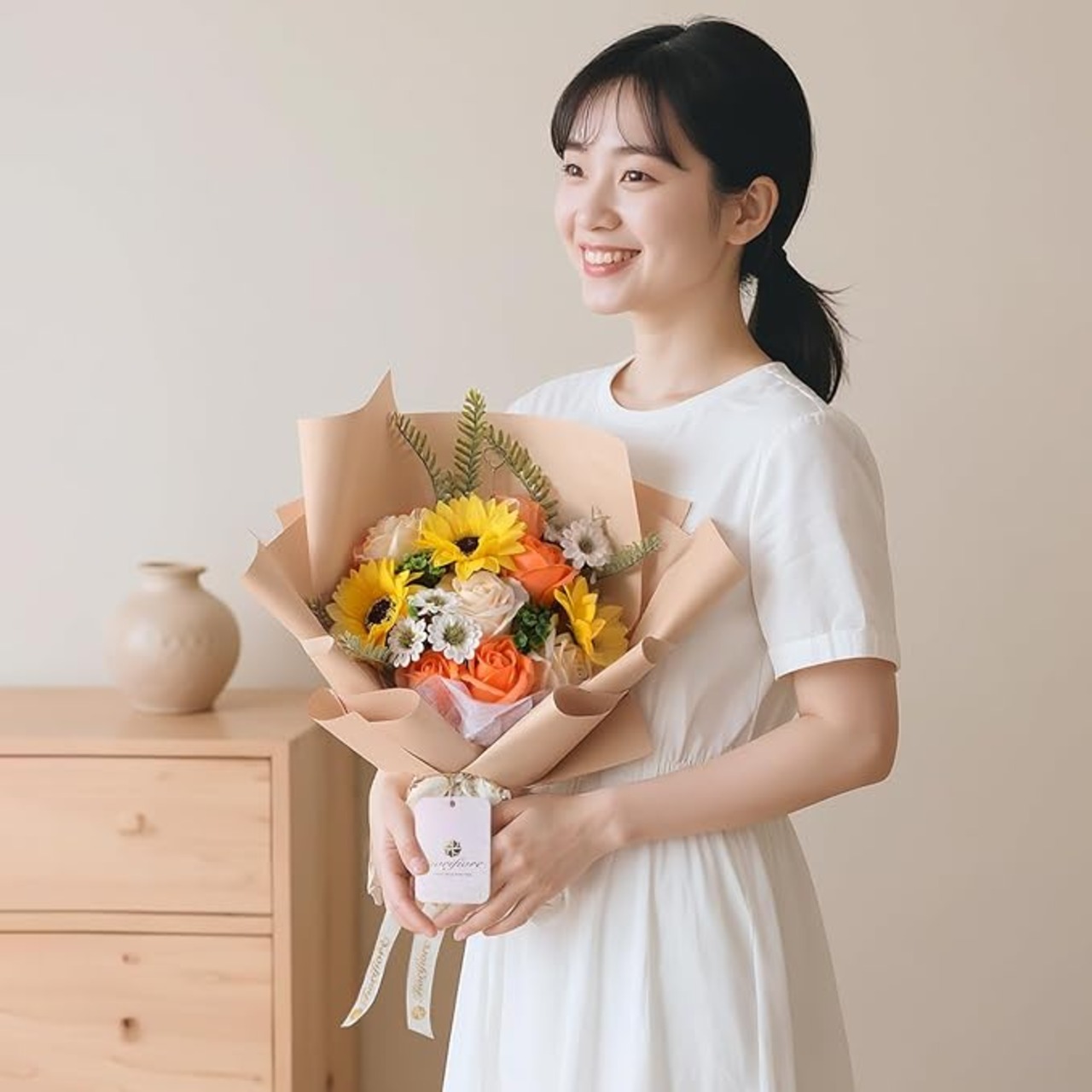 ソープフラワー ひまわり 花束 母の日 ギフト 人気 プレゼント 父の日 誕生日 造花 ひな菊 バラ 女性 卒業式 退職 送別 インテリア (Candice)