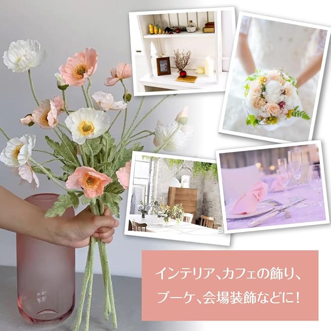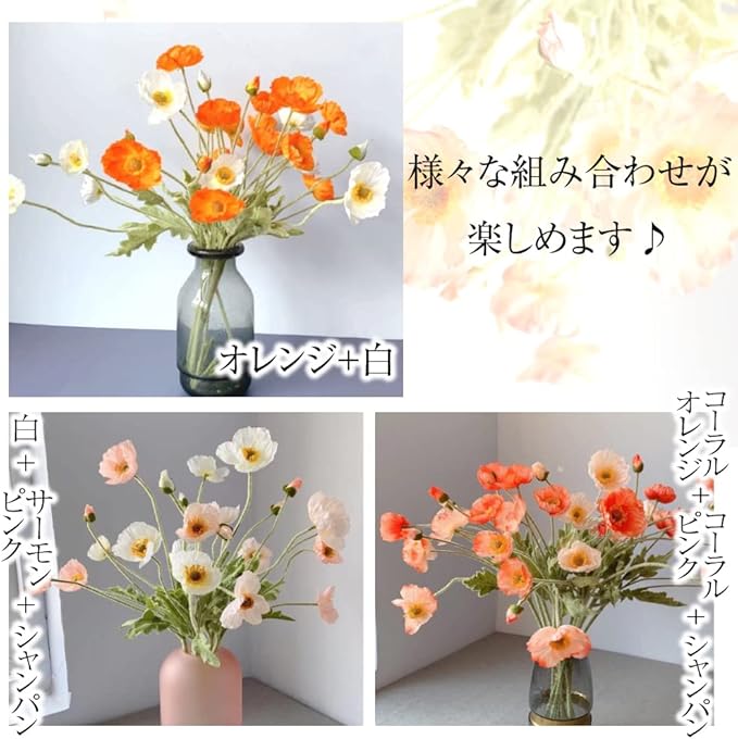春から夏の初めにかけて花を咲かせ、風に揺れる姿がかわいいポピー。そのポピーのアーティフィシャルフラワーです。リアルに再現しました。*花瓶はセットに含まれません。