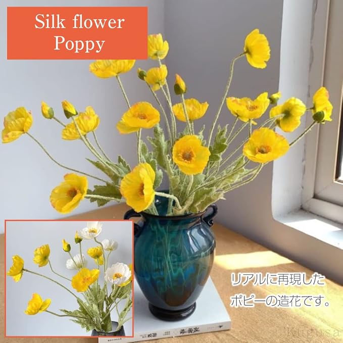 ポピー 造花 インテリア 春の花 フェイク フラワー 花 アーティフィシャル フラワー ケシ 春の造花 3本セット (黄色)