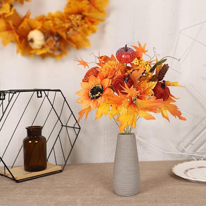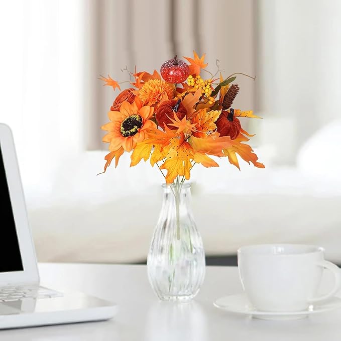 造花ブーケ 人工植物 花束 紅葉 ひまわり かぼちゃ 秋飾り 感謝祭飾り 人工カエデの葉 フェイクシルク植物 ハロウィン パーティー 感謝祭の装飾 オレンジ 秋 ウェディングブーケ 秋の装飾