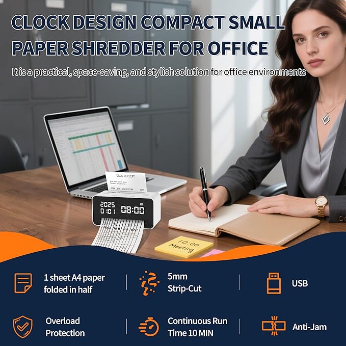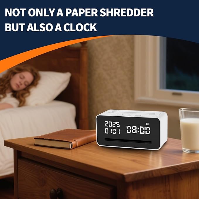 ✅「時計付け小型シュレッダー 、工場累計出荷5万台突破!」このシュレッダーは、LEDクロックディスプレイ、造形がシンプルで高級で、5mmの細断ストリップカットで設計されており、シュレッダーとして使用することができ、時計として使用することができ、お客様のプライバシーを管理同時に時間を管理します。