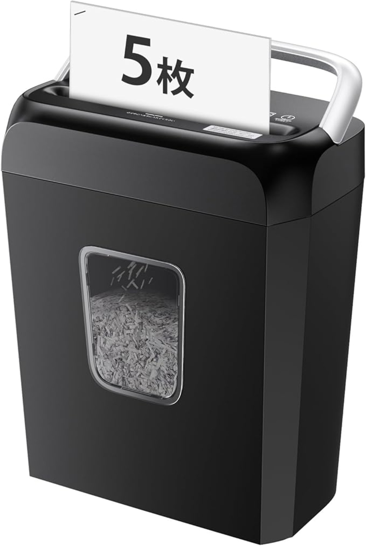 bonsaii シュレッダー 5枚同時細断 5x18mmクロスカット 連続細断4分 カード類/ホッチキス針/クリップ対応 電動 家庭用 ハンドルアップ式 13L大容量 静音 コンパクト ブラック C237-D黒 MAXZIQFM21743