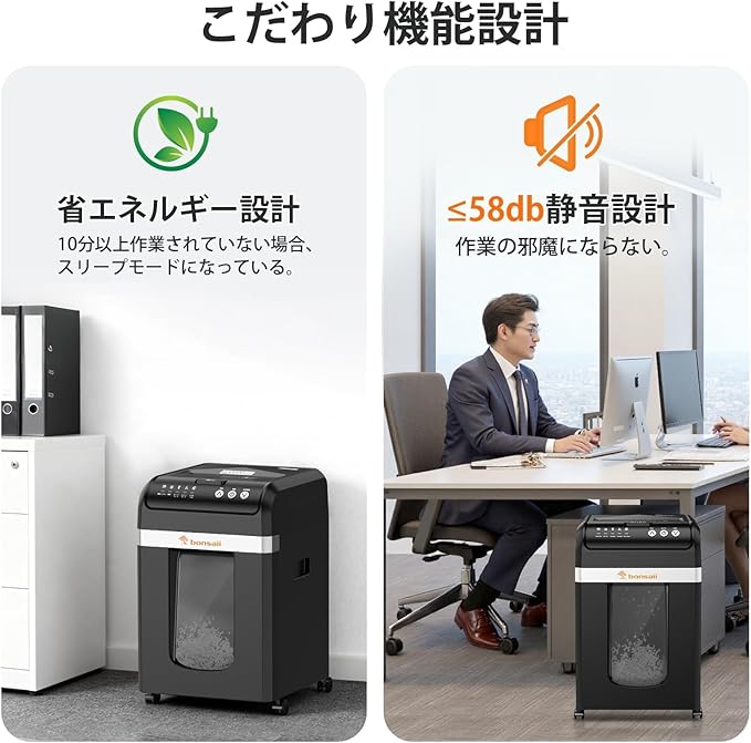 bonsaii オートフィードシュレッダー 300枚自動細断 2x10mm極細マイクロカット 業務用 静音 大容量31L カード/ホチキス対応 節電モード搭載 自動送り機能 ブラック C283-C