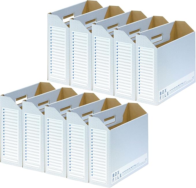 ボックスファイルエコノミータイプ<古紙パルプ配合率93%再生紙段ボール製>AA-E FL-099BF 10冊パック ボックスに求められる品質を保ちながらデザイン(印刷行程の簡略化)の工夫でコストダウンしました。 ・おまとめ買い向け10枚パックです。 ・表側のみの1色印刷。側面にインデックス欄付き ・ワンタッチ底で簡単に組み立てられ、使用しない時には畳んで保管できるので、場所をとりません。 ・グリン購入法適合、GPNエコ商品ねっと掲載品です。