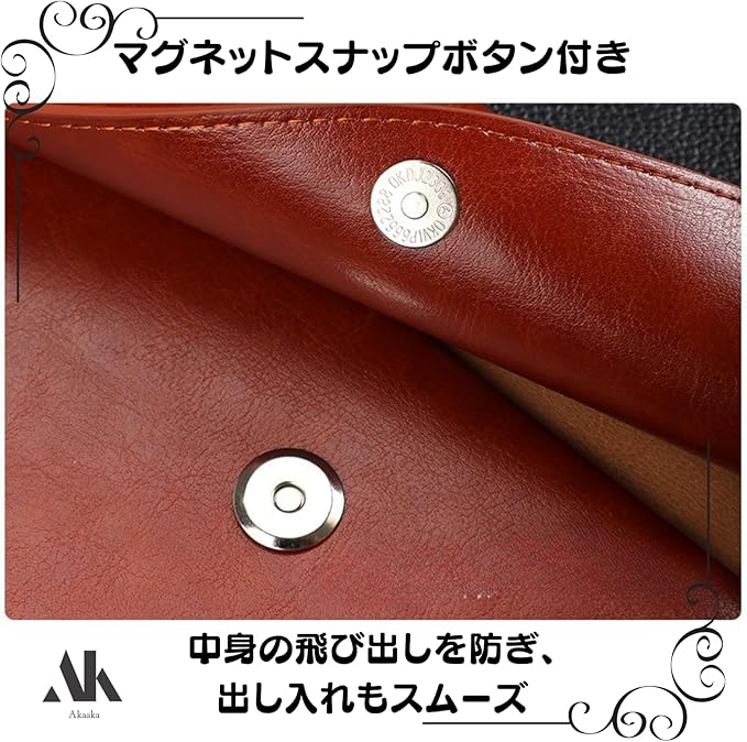 【便利な開閉構造】マグネットスナップボタン付きでしっかり閉じられ、中身の飛び出しを防ぎます。出し入れもスムーズです。