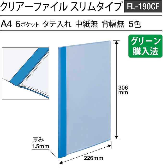 材質:表紙・ポケット=40%再生ポリプロピレン(PP) 表紙=0.2mm 裏表紙=0.4mm