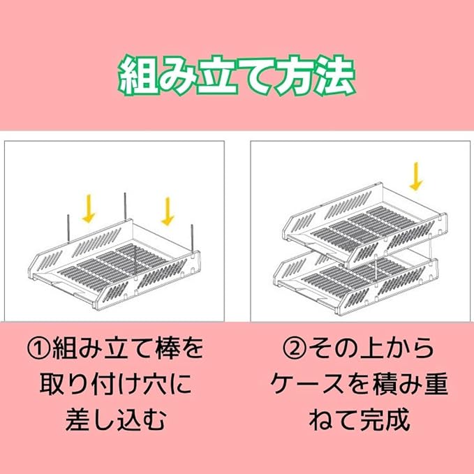【取り付け簡単】組み立て棒を取り付け穴に差し込んでケースを積み重ねます。どなたでも手軽に組み立てることができます。
