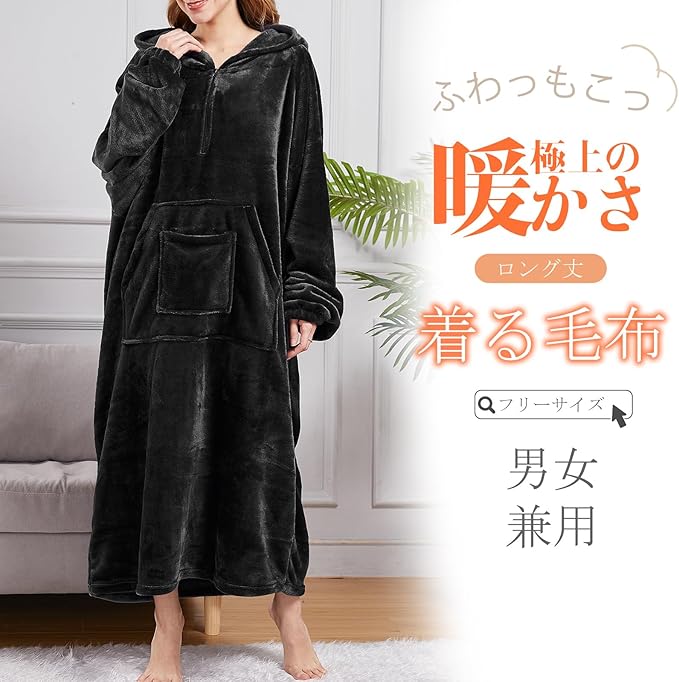 [Sumolux] 着る毛布 レディース メンズ 男女兼用 暖かい ルームウェア フード付き 大きいサイズ ポケット付き 着るブランケット ナイトガウン パジャマ 部屋着 フランネル ふわふわ ゆったり 冷え対策