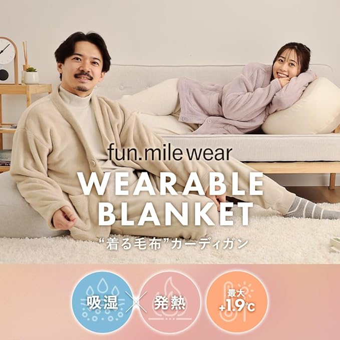 [fun.] 着る毛布カーディガン 男女兼用 ルームウェア 着るブランケット パジャマ ガウン ふわもこ 吸湿 発熱 3色展開 帝人フロンティア企画