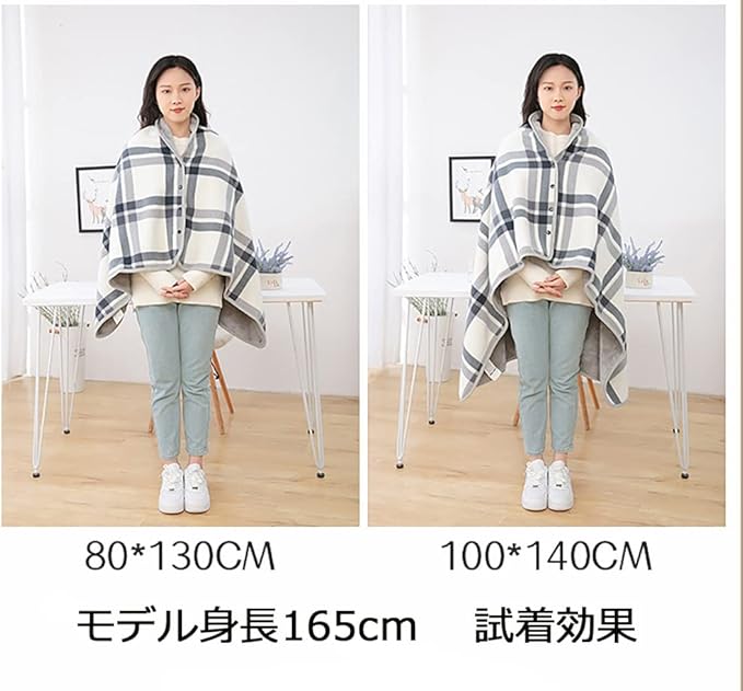 [LeafIn] ひざ掛け ブランケット ハーフケット 大判 4way 着る毛布 肩掛け ボタン付き 厚手 防寒対策 あったか チェック柄 おしゃれ 吸湿保温 抗菌加工 静電気防止 洗濯可能 手触り 暖かい