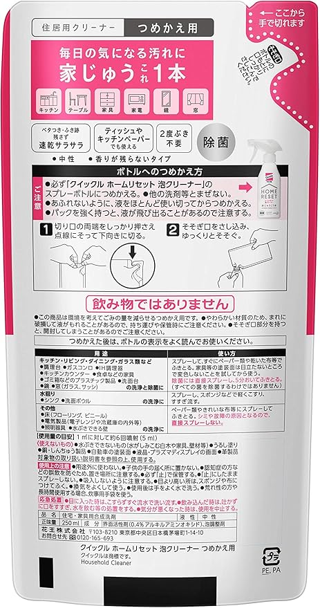 【まとめ買い】クイックルホームリセット 泡クリーナー本体300ml+詰め替え250ml 2個