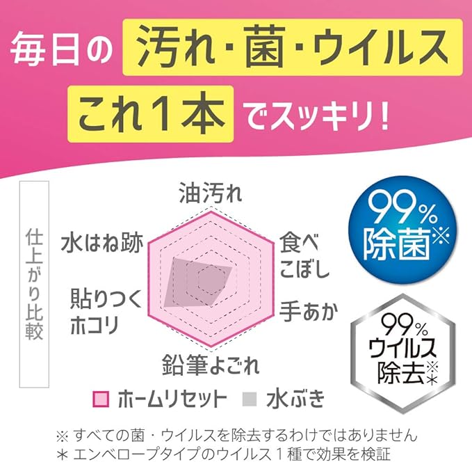 ●テーブルの食べこぼし・洗面台の歯磨き粉・キッチンの油ハネ・冷蔵庫の手あか・ドアノブの菌も、1つで対応