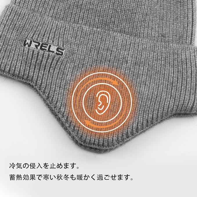 [WRELS] ニット帽 耳あて ニット 帽子 メンズ レディース 冬用 キャップ ヘッドウォーマ 52-64cm 防寒 保温 スノーボート サマーニット スキー 山登り