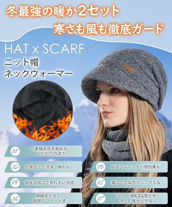[SIVAN] 【冬最強の暖か2セット】 ネックウォーマー レディース ニット帽子 定番なつば付きニット帽・極厚雲感裏パイル・3WAY ニット帽子 防寒防風 保温 柔らかい 小顔効果 締め付け感ゼロ 耐久性 ふんわり 帽子 ニットキャップ 無地 秋冬