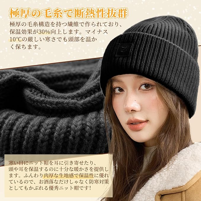 [CANVUE] ニット帽 レディース 冬【究極の防寒対策・極厚の毛糸で断熱性・大きいサイズの声への対応】 防寒帽子 ふわふわ 伸縮性 柔らかい 小顔効果 通勤・通学 旅行 自転車 ユニセックス