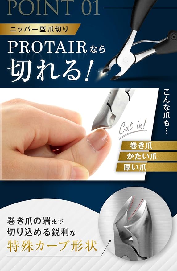 PROTAIR 爪切り ニッパー 巻き爪 硬い爪 ゾンデ/爪やすり付き ステンレス鋼 シルバー