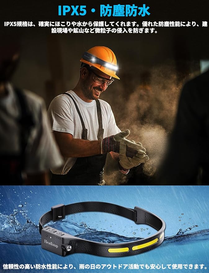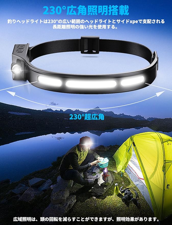 【手を振ることで作動するモーション】内蔵チップは、あなたの指示を感知して、いつでもオン・オフを切り替えることができ、両手を照明のために解放することができる。快適で調節可能なヘッドバンドが付属しているので、ヘッドランプを使えば、仕事、冒険、遊びに両手を自由に使える。