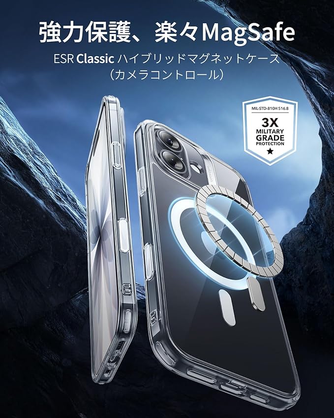 【3倍米軍MIL規格・MagSafe対応】ESR iPhone 17 ケース ワイヤレス充電 iphone17用 カメラボタン付き SGS認証 エアガードコーナー 黄変防止 耐衝撃 PC背面TPUバンパー 指紋防止 高耐久性 マグネットスマホケース Qi2.2対応 最大25W高速充電 マグセーフ いphone17ケース アイフォン17専用Classicシリーズ(クリア)