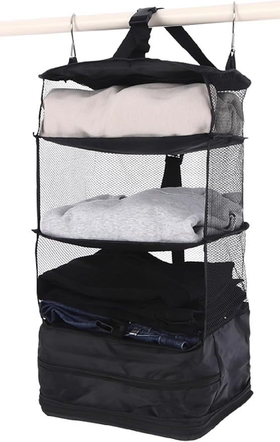 ✅【大容量&取り出しやすい設計】 3つのオープン収納と1つのファスナー収納を備えたLIXIAトラベルポーチは、Lサイズで1〜2泊分、XLサイズで2~3泊分の衣類をきれいに収容可能です。特に1段目には小物用のメッシュポケットがあり、洗面所のポールやホテルの収納スペースに設置しておけば、毎日のコーディネートが簡単に行えます。出発前の朝も、すぐに必要な服を取り出せるため、手間を減らして快適な旅行をサポートします。