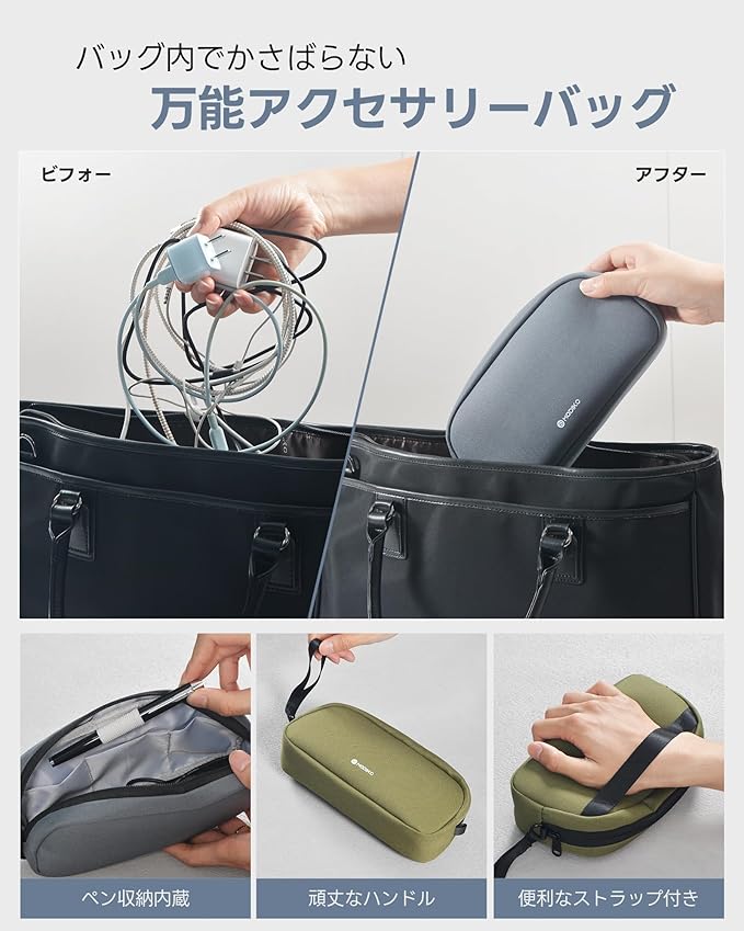 【いろいろなシーンで活用】収納ポーチの本質を追求し、時間短縮とストレス軽減を実現。ビジネス出張からレジャー旅行まで、また通勤時のバッグ整理にも。このガジェットポーチで、効率的でスタイリッシュな毎日を始めましょう。ギフトボックス付き、出張好きな方やガジェットマニアへのメンズポーチとして喜ばれます!