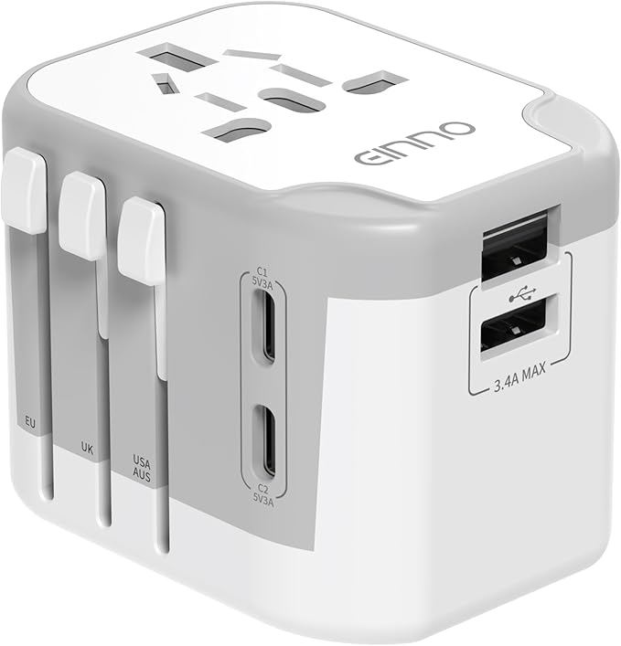 海外 変換プラグ 全世界対応 EINNO コンセント 海外旅行用 電源変換アダプター マルチ変換プラグ C/BF/O/Aタイプ 2つUSB-Aと2つUSB-Cポート付き ヨーロッパ/韓国/オーストラリア/イギリス/シンガポール/マレーシア/ベトナム/タイ/アメリカなどの国に対応