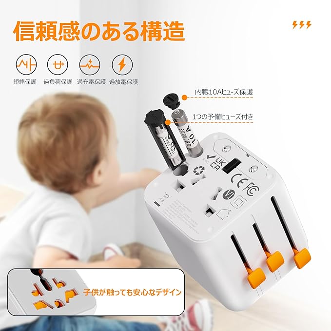 【使用者へのご注意】本製品に変圧機能はございませんので、ACコンセントの部分をご利用したい場合は、ご使用の際は必ず電圧をご確認ください。100-240V対応と表記の電化製品は現地のコンセントに差し込んですぐに使用できます。ヘアドライヤーなどの日本国内仕様(AC100V)の電化製品を海外でご利用になる場合は、別途変変圧器と併用してご使用いただく必要があります。ご使用前に必ず取扱説明書をお読みください。ご使用上に何か質問があれば、お気軽にお問い合わせください。