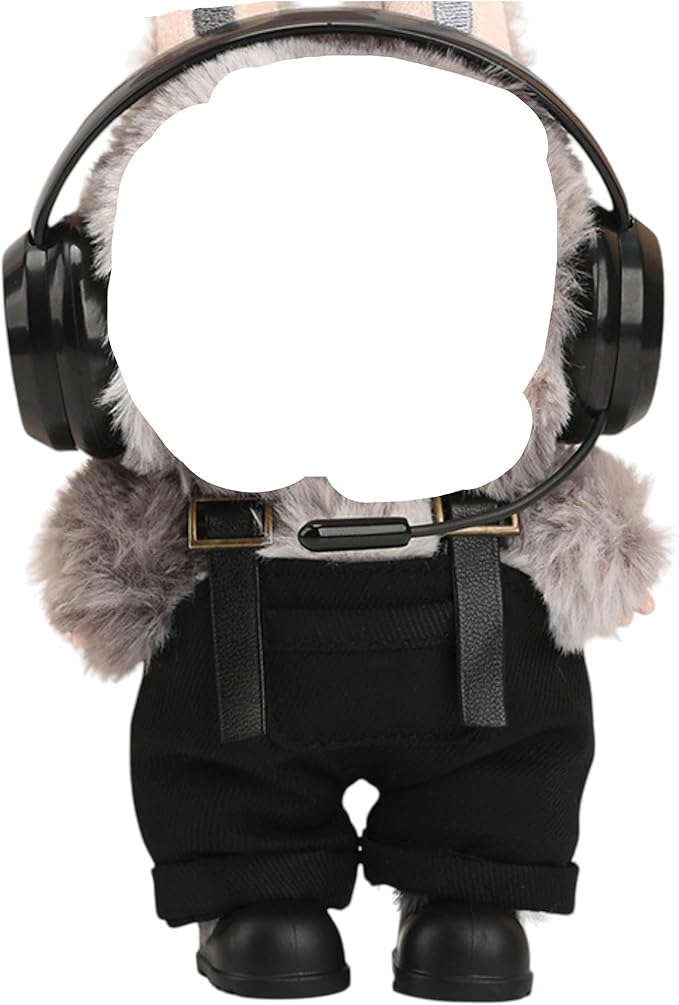 [AXLUCE] ラブブ 服 オーバーオール ヘッドフォン ぬいぐるみ 服 (ブラック)