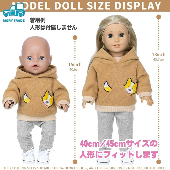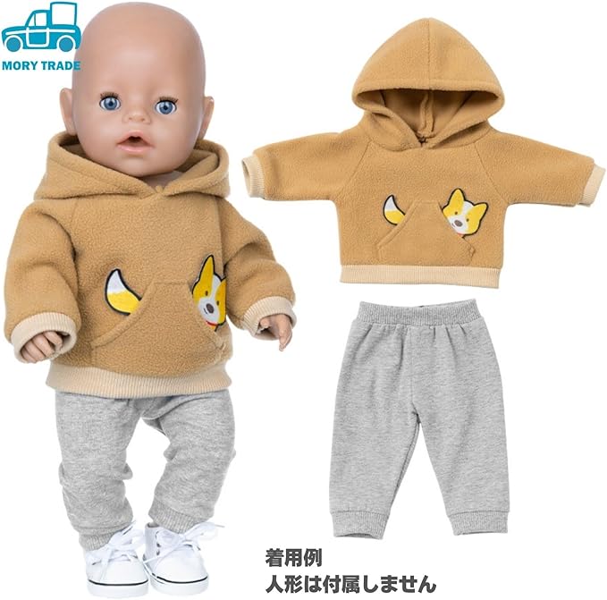 MORYTRADE きせかえ衣装 ベビードール 40cmサイズ 着せ替え 服 赤ちゃん人形 リボンドール 用 ブラウン パーカー