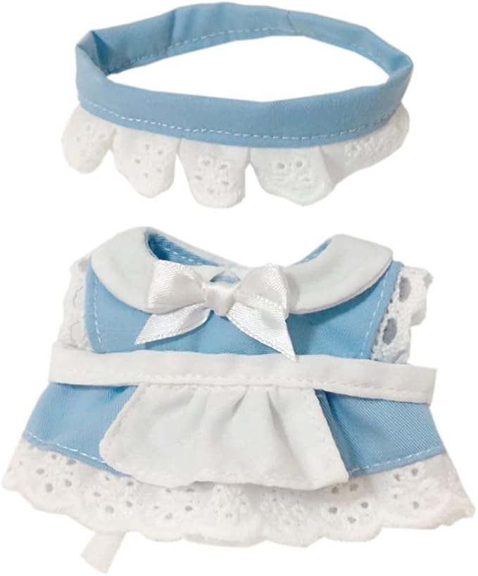 niannyyhouse 10cm ぬいぐるみ 服 メイド服 ヘッドウェア エプロン ドレス 着せ替え 綿人形 アクセサリー (Blue)